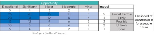 These terms and concepts will inform the next set of questions we ask you. Please familiarise yourself with the ideas and distinctions of the various kinds of risks and opportunities.